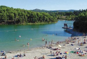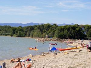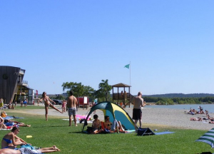 Een heerlijk meer om in te zwemmen, omringd door gras, waar men ook kan kanoën, zeilen en vissen.